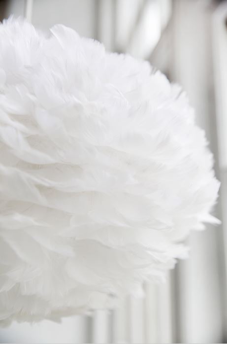 Jeg er vild med fjerlampen Eos, fordi den skiller sig ud med sit skønne design, og den passer godt ind i den nordiske indretning. Super charmerende og helt unik. Eos giver et skønt blødt og flot lys, som breder sig ud i hele rummet gennem de fine hvide dun.